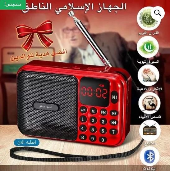 أفضل هدية يمكنك أن تقدمها لوالديك او الى اطفالك و لمن تحب خصوصا في هاد العواشر، راديو إلكتروني يحتوي على القرآن الكريم كاملا مسموع بصوت عدة قرائ، ويحتوي على السيرة النبوية وقصص الأنبياء والرسل وأذكار الصباح والمساء والرقية الشرعية و دعاء الختم، اشتري الآن وادفع لاحقا عند استلام المنتج.
